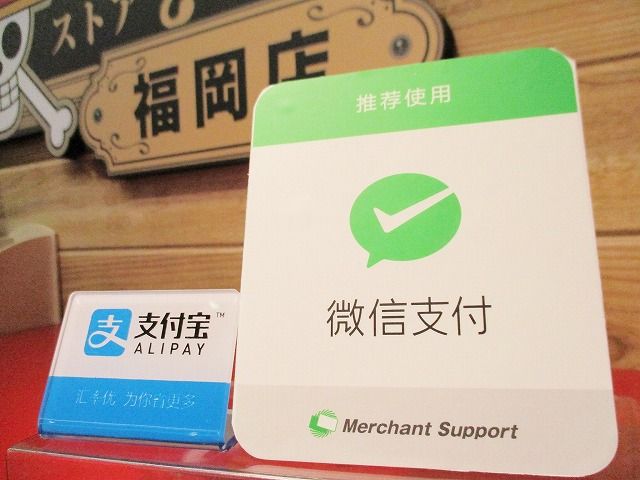 麦わらストア福岡店では現在アリペイ、ウィーチャットペイでのお会計が