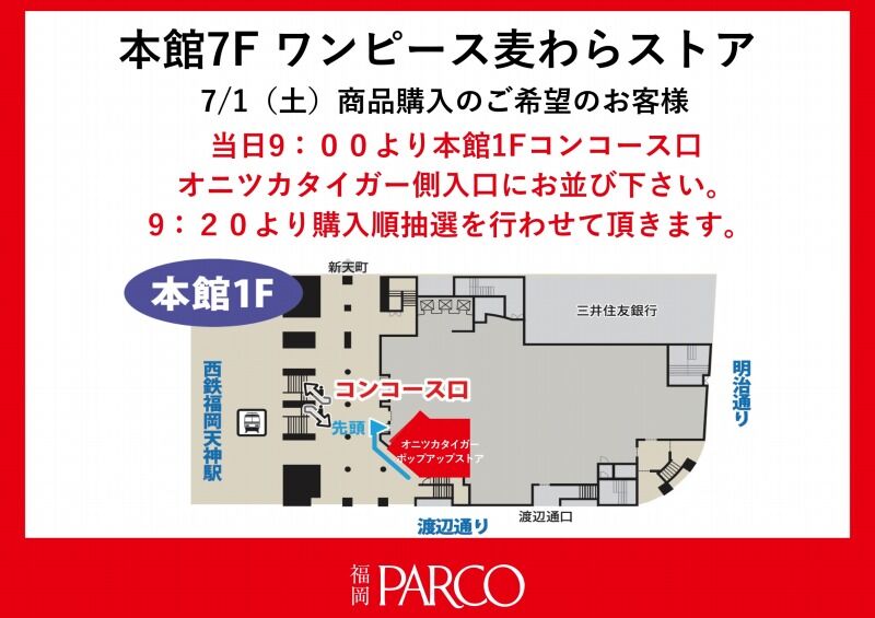 フリー入場の開始時間につきましては、店舗Twitter(@mugiwara_store)にてお知らせ致します。