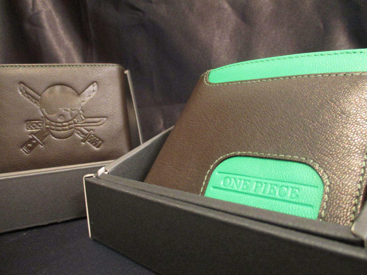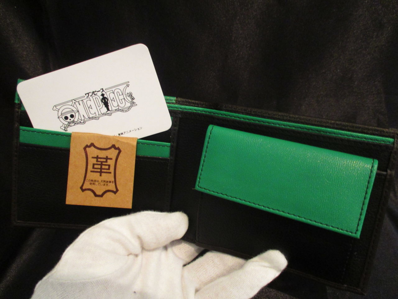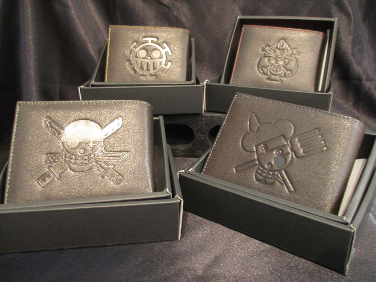 表面に「ONE PIECE」ロゴ、裏面には各キャラクターの海賊旗が型押しされてます♪